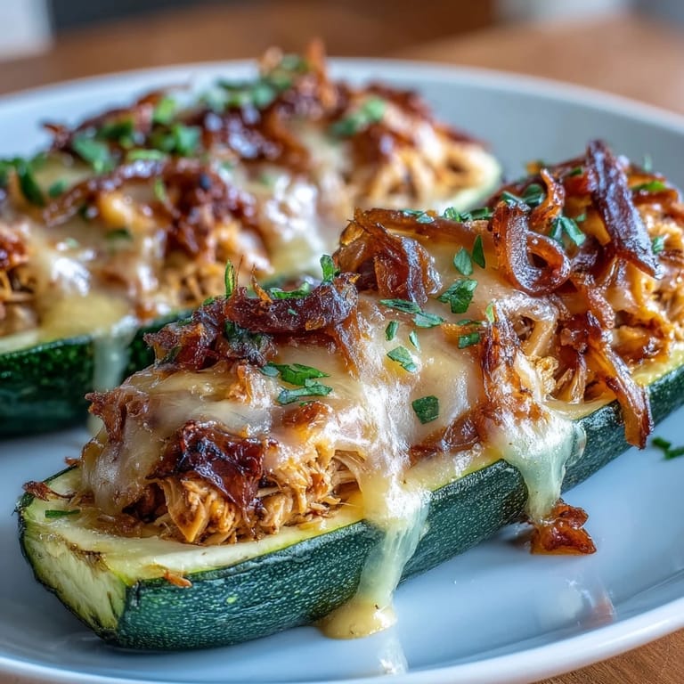 Save to Pinterest My kitchen smelled like charred edges and possibility the afternoon I first made these zucchini boats, mostly because I'd been scrolling through meal prep ideas at lunch and got frustrated with the same tired chicken recipes everyone keeps circulating. The BBQ sauce was already in my fridge from last weekend's grilling attempt, and those zucchini were getting soft in the crisper drawer—you know that moment when you need to use something before it becomes regret. Something about hollowing out the zucchini felt meditative, like I was building little edible vessels instead of just cooking dinner.