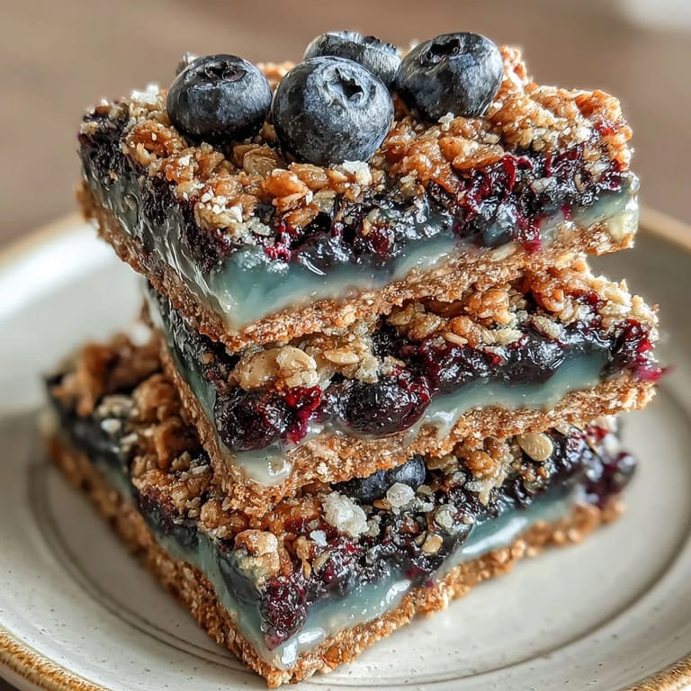 Save to Pinterest My sister showed up at my kitchen door one Saturday morning with a container of farmers market blueberries and an ambitious idea—she wanted to create something we could portion into little gifts for our book club. We spent that morning experimenting, layering oats and berries, and by the time we pulled the first batch from the oven, the whole house smelled like cinnamon and caramelized fruit. These bars became our thing after that, soft enough to eat with your fingers but sturdy enough to wrap up and hand to someone with a genuine smile.