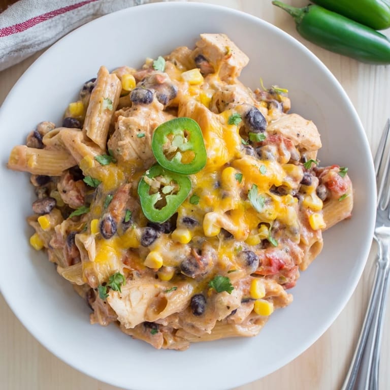 Last winter my sister texted me at eleven PM absolutely certain her life was falling apart. I showed up with a container of this pasta and we ate it straight from the container with forks on her living room floor. Somehow Tex Mex comfort food fixes everything eventually.