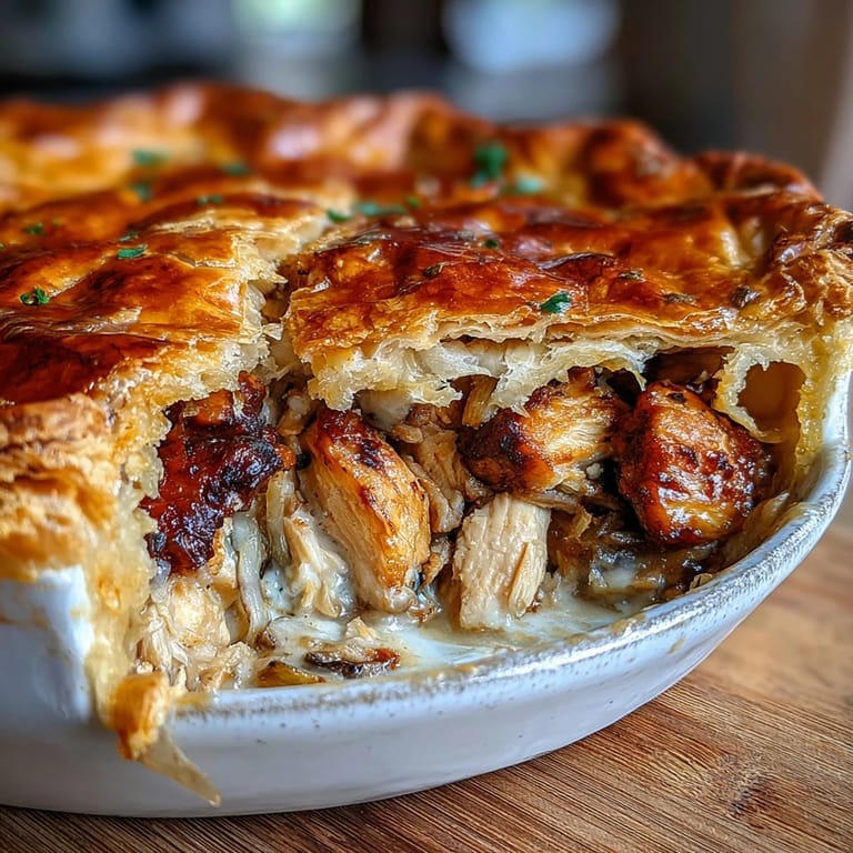 Save to Pinterest This Chicken and Leek Pie is an elevated take on the classic chicken pot pie, featuring tender chicken, sautéed leeks, and smoky bacon in a luscious creamy sauce. Encased in a golden, flaky pastry, it represents the ultimate comfort food for cozy evenings at home.