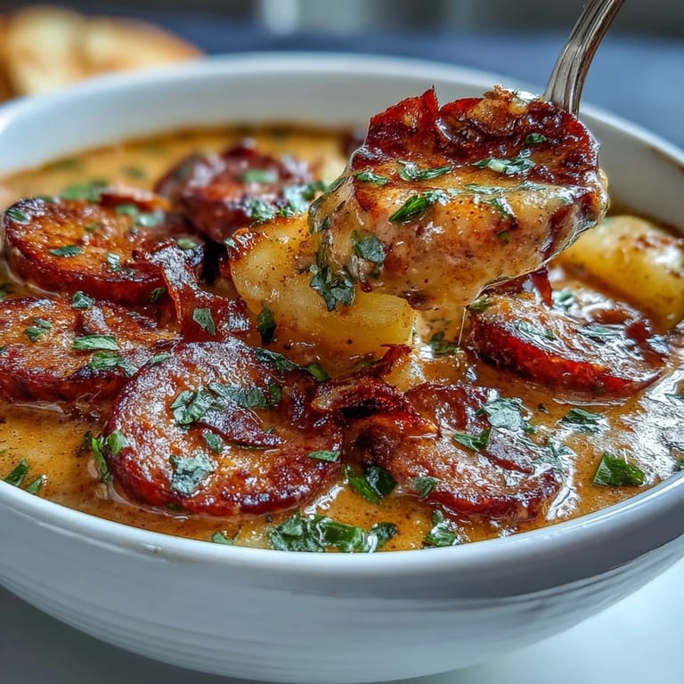 Save to Pinterest The first time I made this soup, it was snowing sideways and my kitchen was the only warm place in the world. I had picked up some andouille from a specialty shop on impulse, and something about the smoky smell just demanded potatoes and cream. Now, whenever that distinctive Cajun spice hits the hot butter, I'm instantly back in that cozy moment, watching steam curl up the windows while my apartment filled with the most incredible aroma.