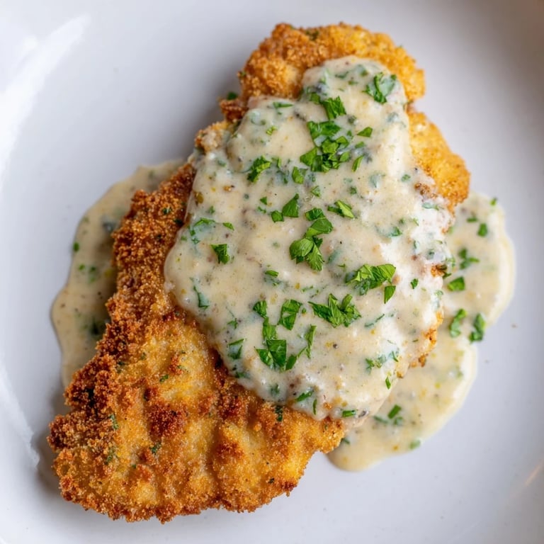 Save to Pinterest The first time I made this dish, I was stuck between wanting something elegant and needing dinner on the table in under an hour. I'd just bought beautiful chicken breasts and had heavy cream lingering in the fridge, so I decided to build something around both. That golden, crispy exterior with the silky garlic sauce underneath turned out to be the kind of meal that feels like you tried harder than you actually did—which, honestly, is the dream.