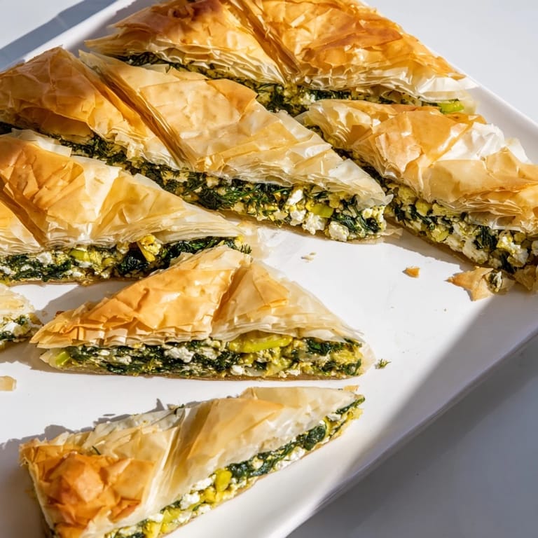 Save to Pinterest There's something about the sound of phyllo sheets crackling under your fingers that makes you feel like you're doing something authentically Greek, even if you've never set foot in Athens. I discovered spanakopita during a cooking experiment gone right—I had a block of frozen spinach, some crumbly feta, and phyllo that was about to expire, so I threw them together on a whim. What emerged from the oven was golden, impossibly crispy, and so good that my kitchen smelled like an invitation nobody could refuse.