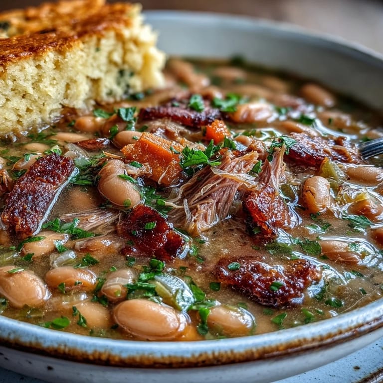 Save to Pinterest There's something about the smell of a ham hock breaking down in a pot that makes a kitchen feel like home, even if you're just visiting. My aunt used to make this soup on Sunday afternoons, and I'd sit at her kitchen table doing homework while the broth turned golden and the beans softened into clouds. Years later, I finally asked her for the recipe, expecting something complicated, but it was just the opposite—a simple, patient kind of cooking that rewards you for showing up and stirring occasionally.
