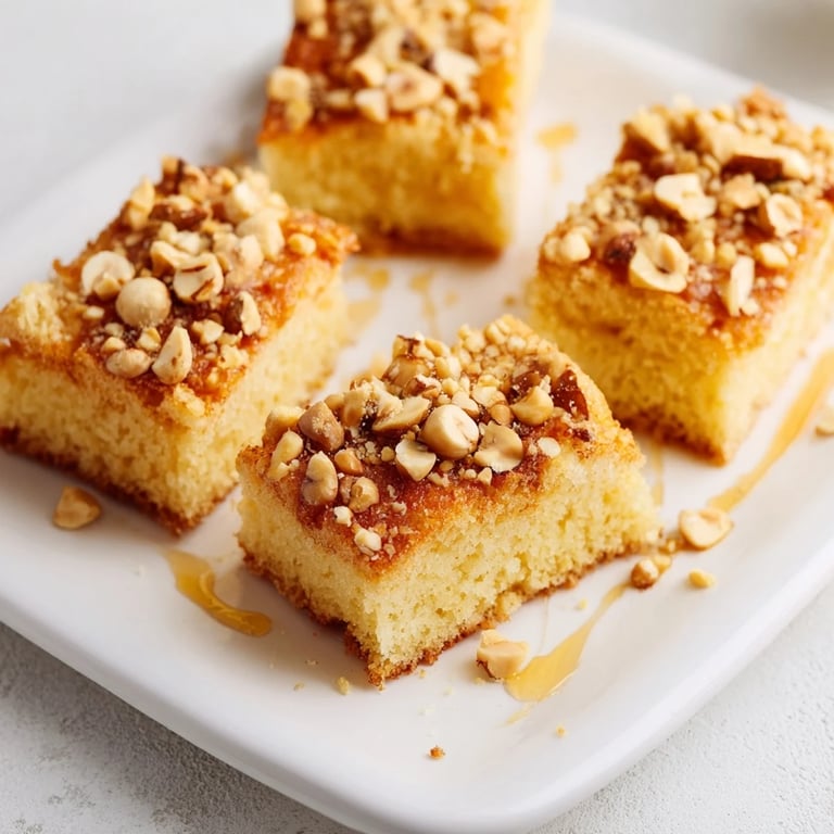 Save to Pinterest Soft, golden cake squares with the rich flavor of toasted hazelnuts and the delicate sweetness of honey. Perfect for afternoon tea or as a light dessert.
