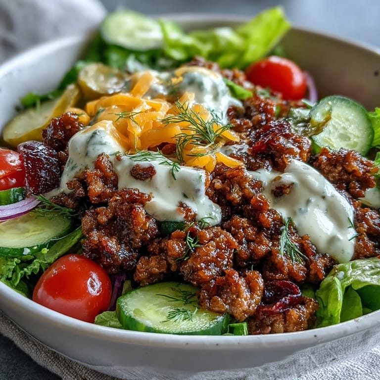 Save to Pinterest The first time I made these cheeseburger bowls, I was trying to satisfy a ridiculous burger craving while sticking to a new high-protein eating plan. I stood in my kitchen wondering if deconstructing everything into a bowl would actually work or just feel like a sad salad alternative. That first bite completely changed my mind—the flavors hit differently when you can get a little bit of everything in each forkful. Now my husband actually requests these over traditional burgers, which still surprises me.