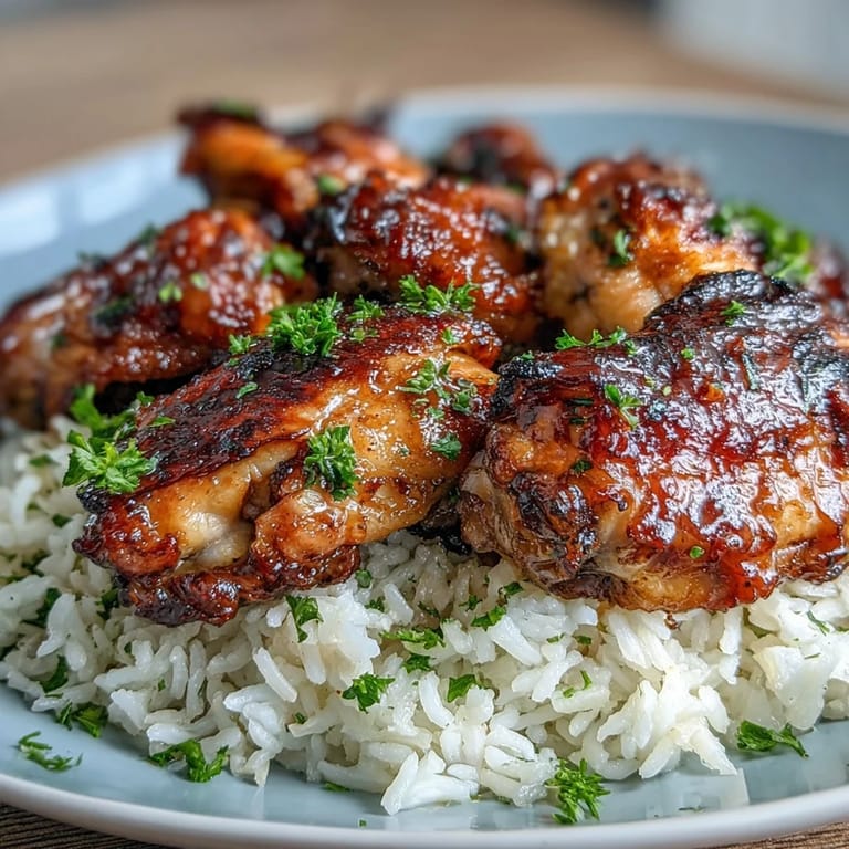 - Spoon buttery rice onto plates, arrange sticky wings on top, and finish with a sprinkle of fresh parsley. Serve immediately while everything is still warm and the wings are at their stickiest.