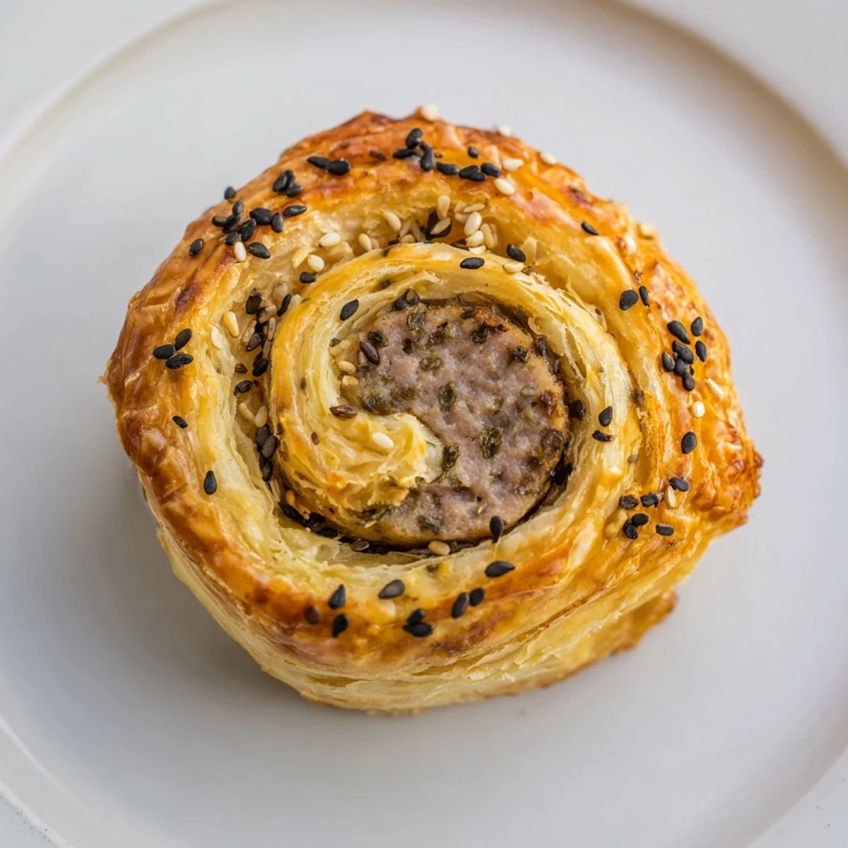 Save to Pinterest A festive and irresistible appetizer featuring golden, flaky pastry wrapped around herbed sausage, arranged in a striking half-circle wreath—perfect for sharing at any gathering.