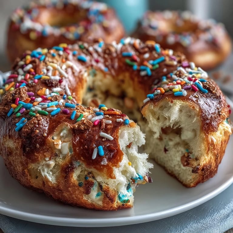 Save to Pinterest There's something special about watching someone bite into a bagel that tastes like birthday cake but actually nourishes them—that moment when indulgence and nutrition stop being enemies. These have become my go-to for celebrating ordinary Tuesdays and making breakfast feel like an occasion.