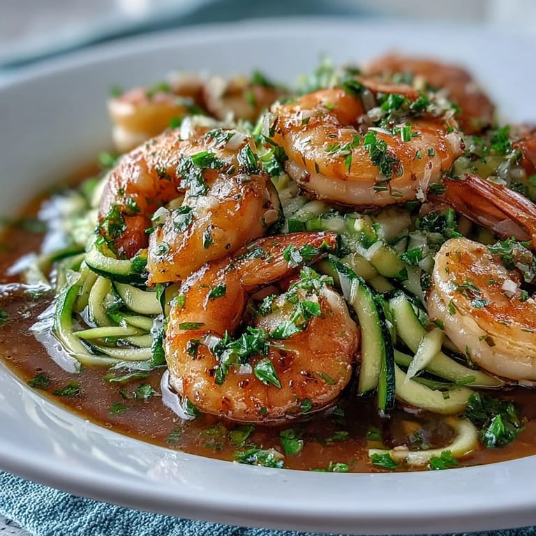 Save to Pinterest There's something about the sound of shrimp hitting a hot skillet that makes you feel like you're actually cooking something restaurant-worthy. I discovered this version on a Tuesday night when I was tired of heavy pasta but craving that garlicky, buttery scampi experience, and it hit me that zucchini noodles could do the trick without the carb crash afterward. The first time I made it, my kitchen filled with this amazing lemony-garlic aroma that had my partner wandering in from the other room asking what smelled so good. What started as a quick weeknight experiment became something I find myself making twice a week now.