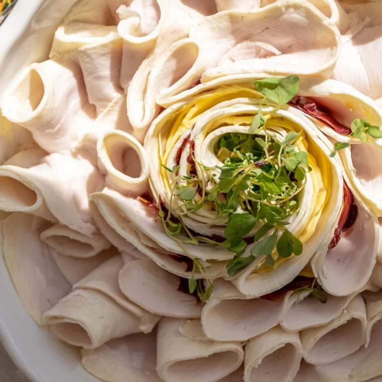 Save to Pinterest Savory turkey and creamy provolone cheese are wrapped in soft tortillas with fresh vegetables and a flavorful spread, creating the perfect bite-sized snack or light lunch for the whole family.